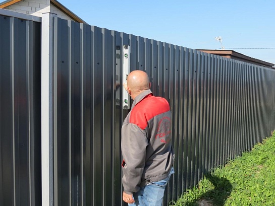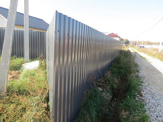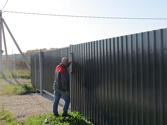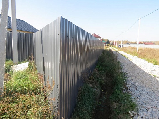Забор из профнастила на столбах с утрамбовкой щебнем 78 метров